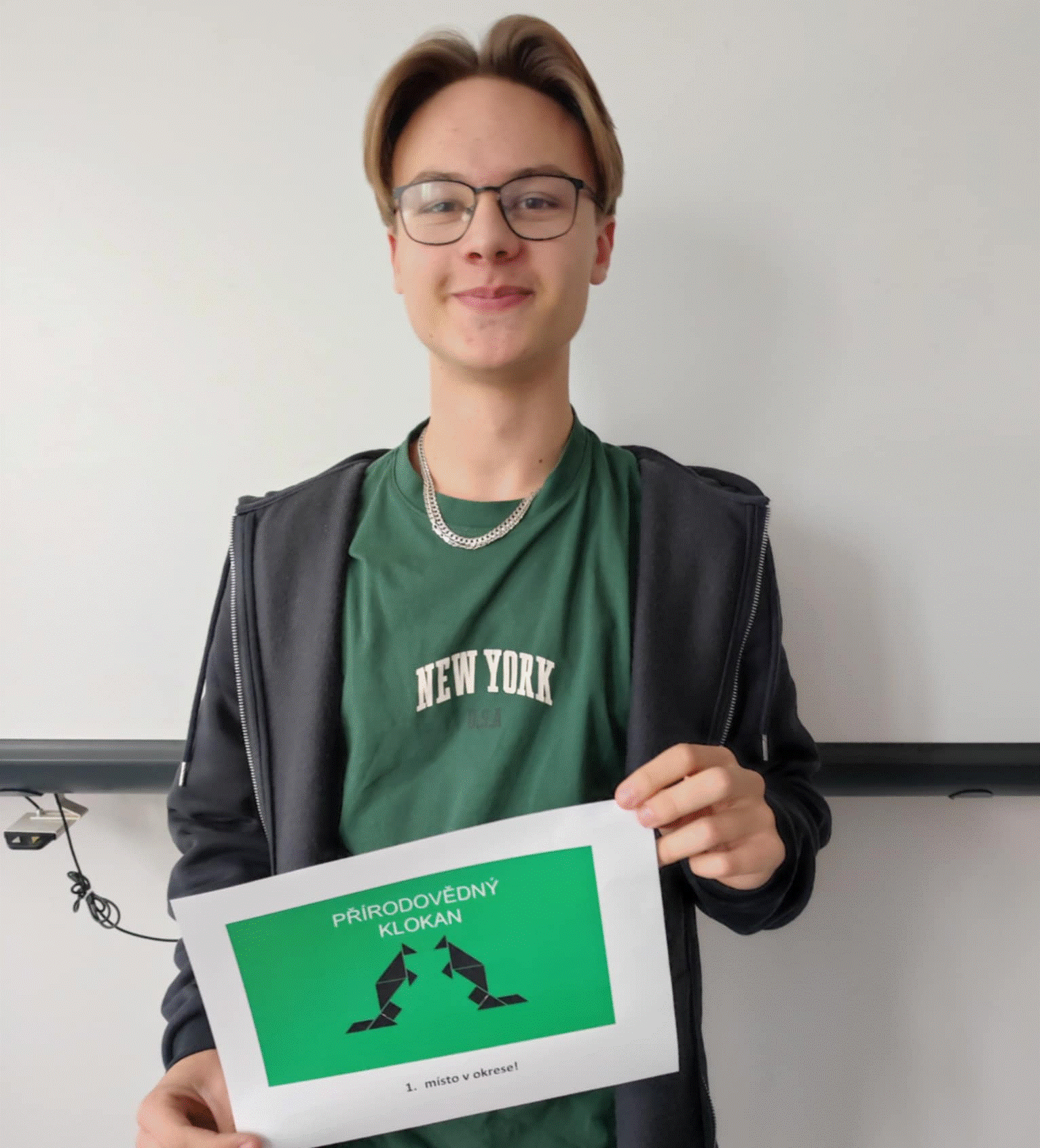 Student kvinty Martin Dostál dosáhl vynikajícího úspěchu v letošním ročníku soutěže Přírodovědný klokan. V kategorii Junior získal výborných 100 bodů, což mu vyneslo 1. místo v okrese Havlíčkův Brod! Celý článek