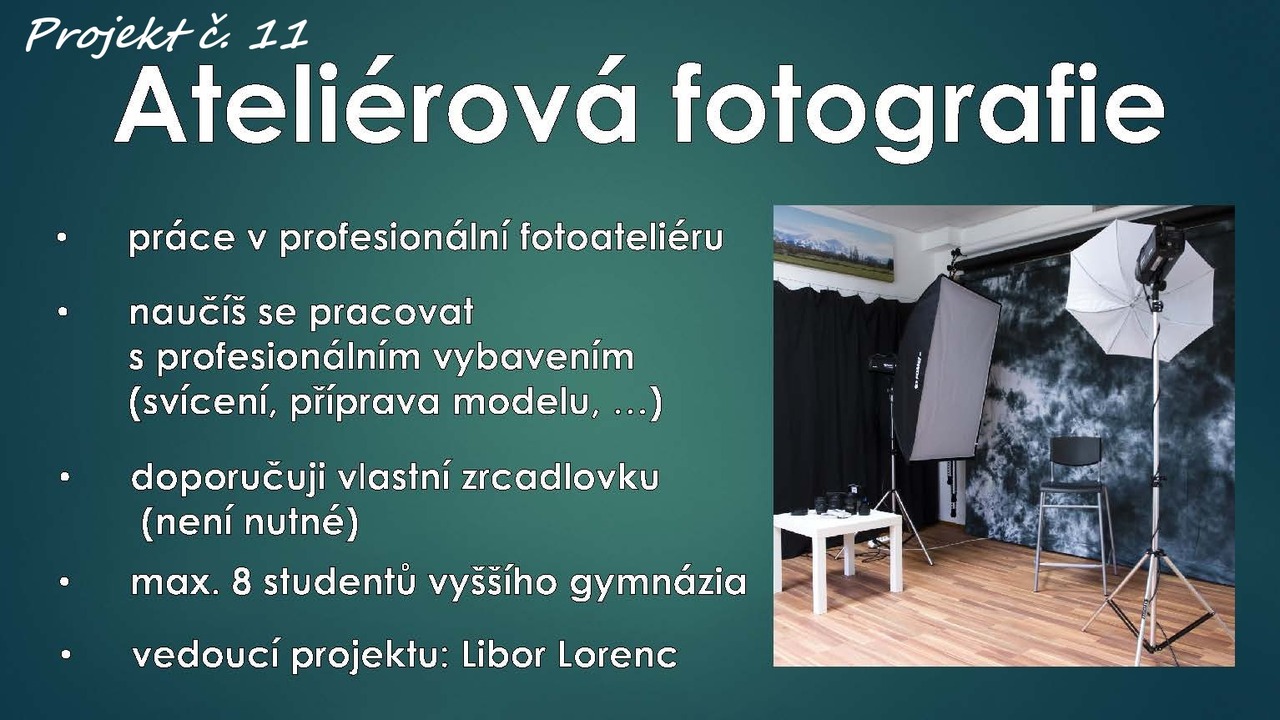 Přihlášování proběhne přes Bakaláře (aplikace na telefonu, nebo po přihlášení na PC) přes anketu, ve které si vyberete právě jeden projekt. Systém hlídá i maximální obsazenost a po naplnění kapacity neumožní další zápisy. To je možné jen v případě, že se někdo přehlásí, a uvolní tak místo. Anketu je nutné odeslat – tlačítko na poslední stránce!